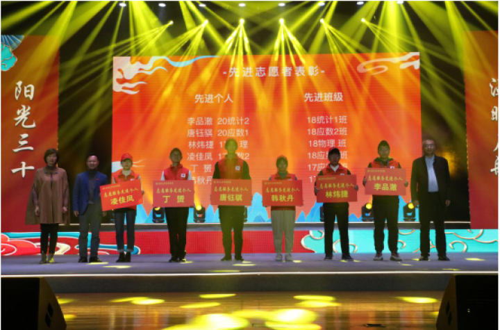 此外,今年是数理学院“阳光”青年志愿者成立三十周年,除推出敬老服务新举措外,当天,学院还举办了“阳光三十年 不变敬老情”主题庆典活动,通过文艺表演、主题论坛、先进志愿者表彰等形式,让学生将“尊老敬老、向上向善”的“阳光精神”内化于心,外化于行。