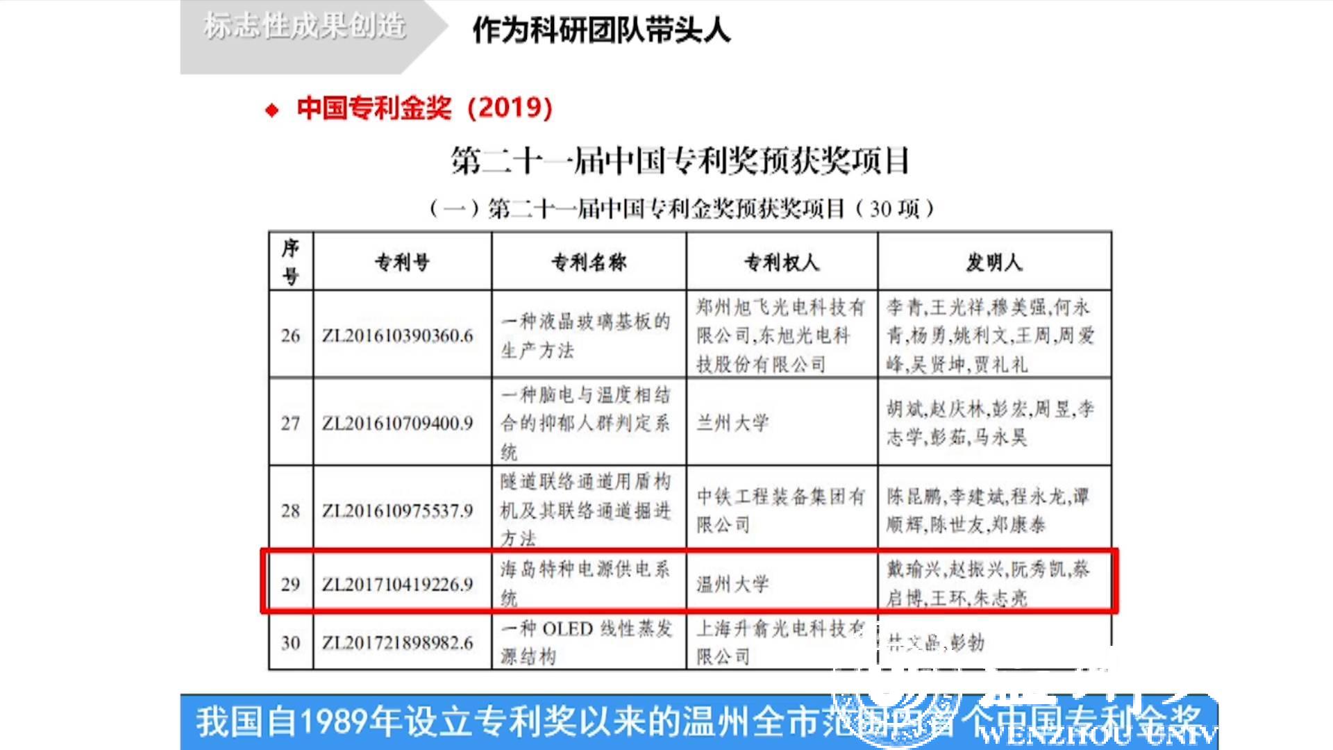 2019年,日本色情片 凭借“海岛特种电源供电系统”获得第二十一届中国专利金奖,成为我市历史上首个国家级专利金奖,也是这次我省仅有的两个金奖项目之一,该成果填补了国内海岸工程兆瓦级特种交流电源关键技术空白,达到国际领先水平。