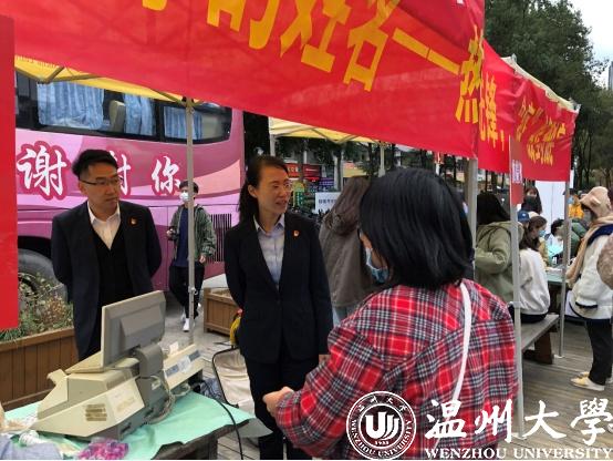 与往年情况不同的是,今年该学生支部在开展无偿献血活动时还吸引了校外企业界的党员同志的参与,这得益于该学生支部与企业党支部的结对共建工作。今年7月1日,该学生支部与新华保险温州中支党支部签署了结对共建协议,约定双方有重大的主题党日活动时互派党员参加。在无偿献血活动现场,新华保险温州中支的朱秀薇等四名党员也积极参与组织活动,职场人士的身影也成为学生队伍中一道靓丽的风景。
