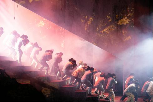 舞台上,演员们激情澎湃的演唱、情感真挚的表演,征服了全场观众。歌剧深度结合温州本土歌谣元素,其中《请你为我绘一幅画》《国旗颂》《心中的启明》等段落在剧中反复咏唱,朗朗上口,感人至深。在最后一幕中,当曾联松设计的五星红旗高高飘扬时,全场都为之振奋,许多观众深受感染,流下热泪。“日出东方,幸福歌唱,伟大的祖国走向富强。心潮逐浪,激情飞扬,崭新的世界续写新的辉煌。”饱含热泪的双眼,满场挥动的五星红旗,这些正是对曾联松先生、对五星红旗、对这部歌剧的最大喜爱和最高敬意。
