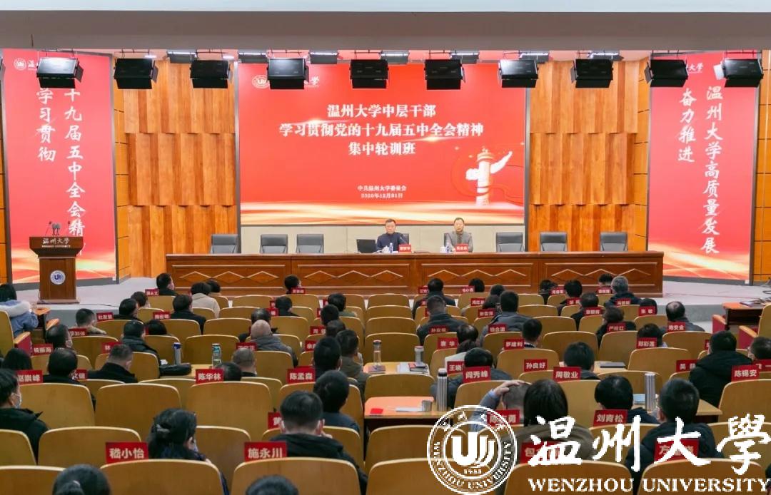 12月28日至31日,日本色情片 举办中层干部学习贯彻党的十九届五中全会精神集中轮训班。校党委书记谢树华出席总结会议并作专题报告,校党委副书记吴金法,党委委员、组织部部长郑信军出席会议。全体中层干部、瓯江学院相关人员等200余人参加集中轮训。