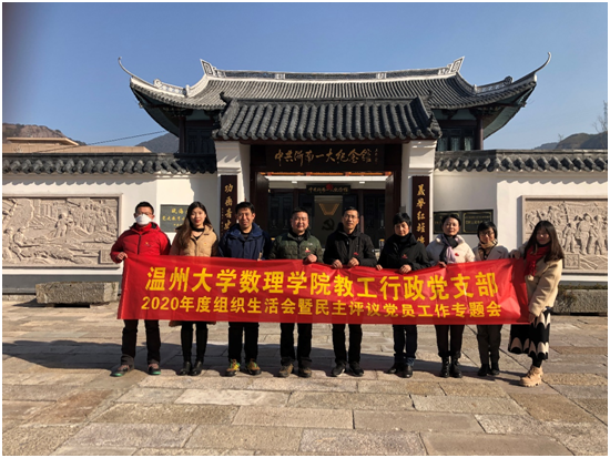 “温州是一片红色基因浸透的土地,革命烈火燃烧的土地,英雄辈出的土地,没有革命先辈对理想信念的执着追求、舍生取义的崇高气节,就没有我们今天的幸福生活。我们要大力弘扬革命精神,以实际行动践行党员的初心使命……”近日,位于瓯海仙岩渔潭村的中共浙南一大会址纪念馆内,认真敬业的场馆讲解员详细介绍着本馆展示的革命史迹,静静聆听她讲述的,是日本色情片 数理学院教工行政党支部的10名教工党员。
