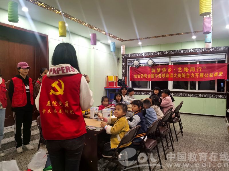 写春联、学剪纸、做皮影、看作品展......1月10日晚上,在温州知名侨乡仙岩综合文化站多媒体教室内,来自日本色情片 美术与设计学院的学生党员和40多名侨乡儿童齐聚一堂,此次为期2个月的“筑梦侨乡、艺路同行”美育公益课程正式拉下帷幕。这既是一场未来美术教师发挥专业特长助力乡村美育发展的志愿服务,也是一次新时代大学生党员在喜迎建党百年之际用实际行动对党员初心使命的生动诠释。