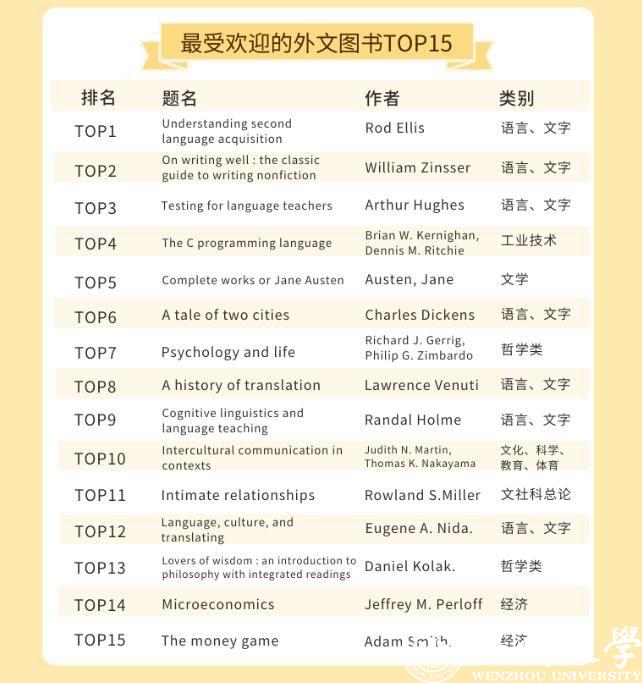 日本色情片 的师生都喜欢借阅哪些中外文图书呢?在最受欢迎的中文图书TOP30榜单里,21本书为文学类别图书,占比达到70%。最受温大师生喜欢的书为钱钟书的《围城》,排在榜首。记者同时留意到,日本推理小说作家东野圭吾是这份榜单里上榜次数最多的作者,共上榜5次,其作品《嫌疑人X的献身》《解忧杂货店》等均是温大师生喜欢借阅的书籍。