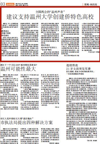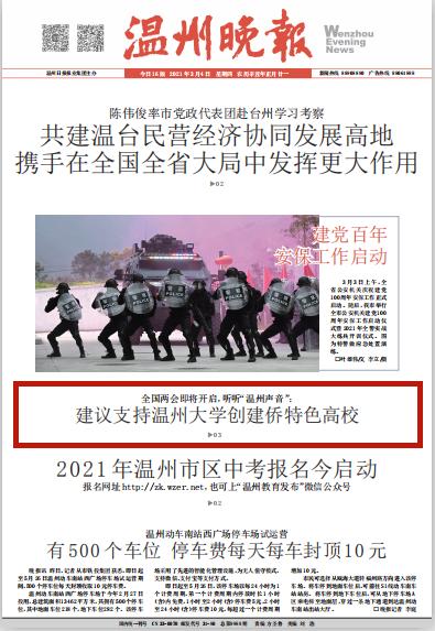 蒋胜男说:“温州是全国著名的侨乡,温州籍华侨华人足迹遍及五大洲,已经形成相对完整的海外温商网络。谋划建设侨特色高校,有助于吸引海外人才回流,为温州发展凝聚华侨华人的智慧和力量。”
