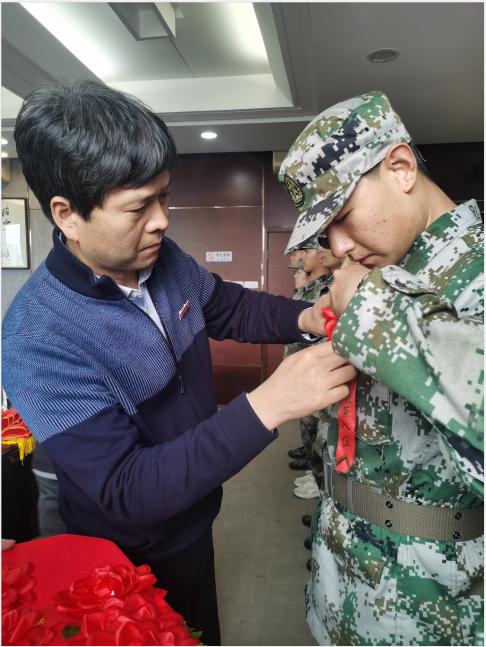 欢送会上,校党委副书记庄兴忠为入伍新兵佩戴上了光荣花,新兵代表米拉迪力·图尔荪和郑洁同学在会上表达了对学校培养的感激以及刻苦训练、为校争光的决心。他们是优秀的人民子弟兵,也是“求学问是、敢为人先”的温大人!