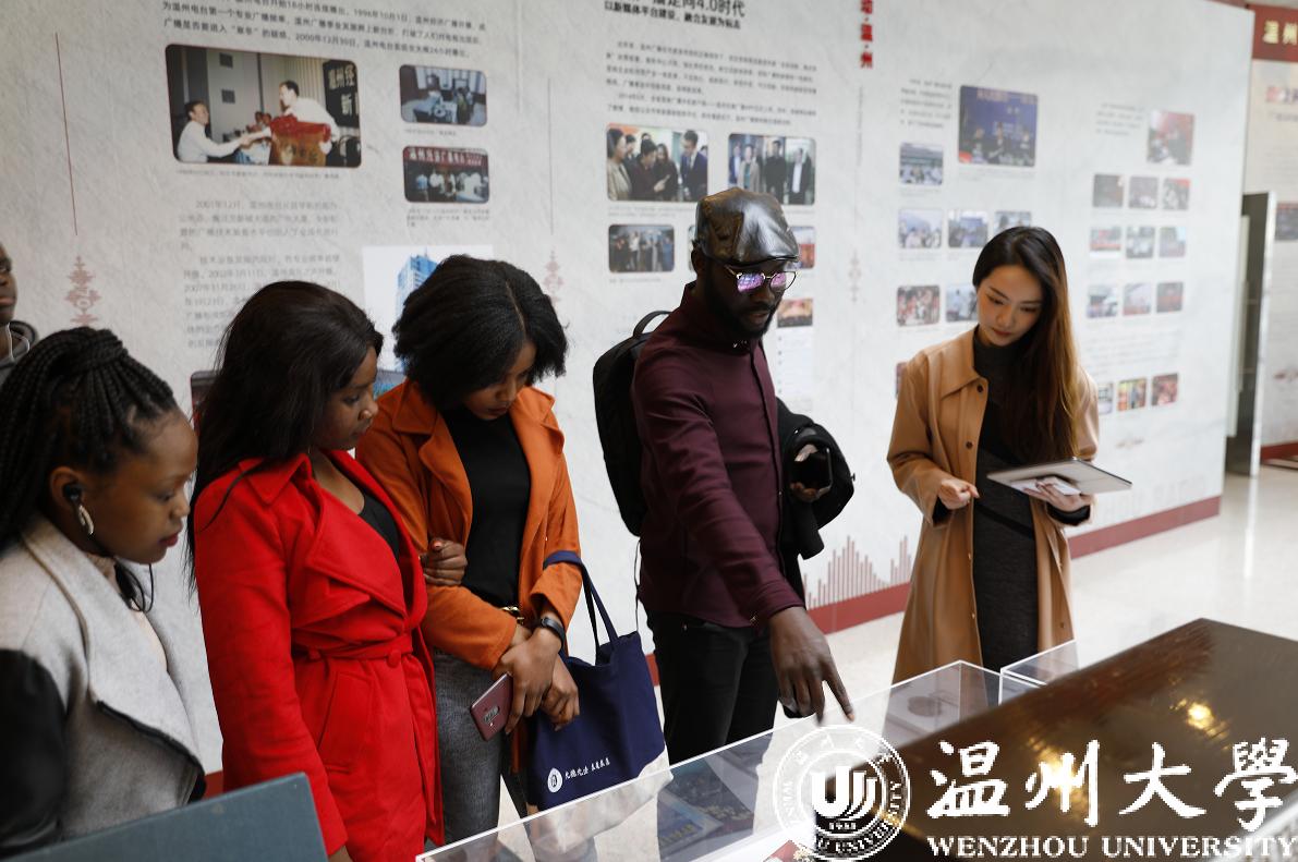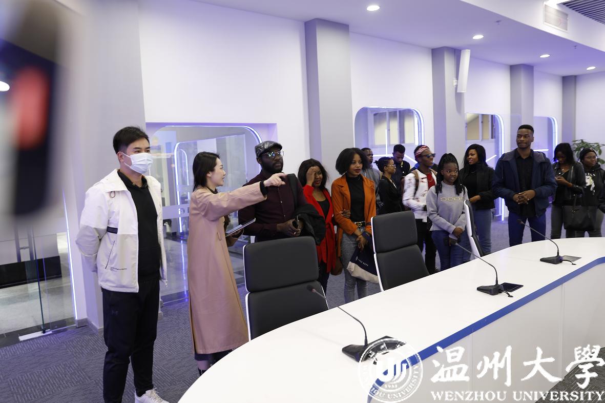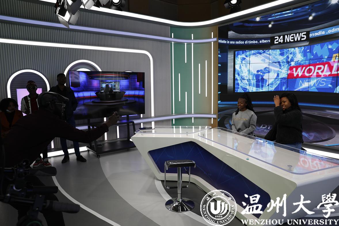留学生们依次参观了广电一楼新指挥室,演播大厅,转播车等,随后来到301联播演播间以及308虚拟演播室进行参观学习,快点温州app主播凌子带队讲解,并与留学生们拍摄了短视频。