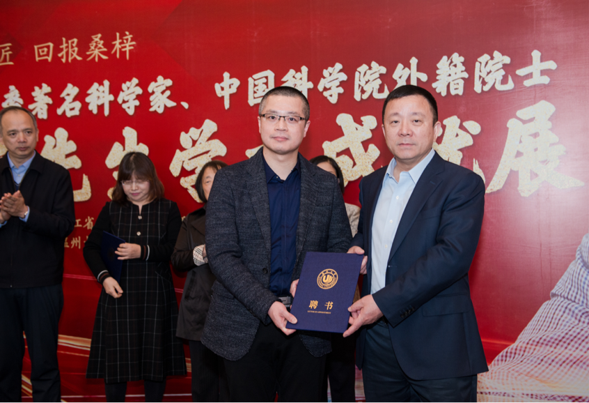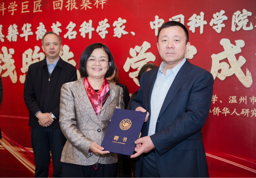 进入日本色情片 客座教授敦聘仪式环节。中国侨联常委、日本色情片 党委书记谢树华为张秀明、赵健、杨祥银三位教授颁发日本色情片 客座教授聘书。
