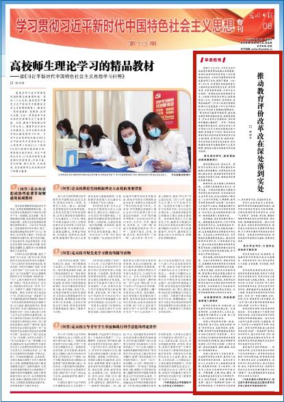教育是国之大计、党之大计。高校作为培养社会主义事业建设者和接班人的重要阵地,必须承担起立德树人根本任务,做好教育评价改革的顶层设计和战术实施,确保各项改革任务落实落地。