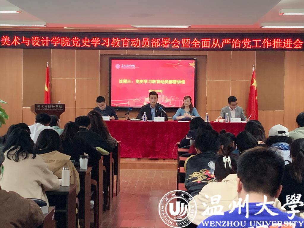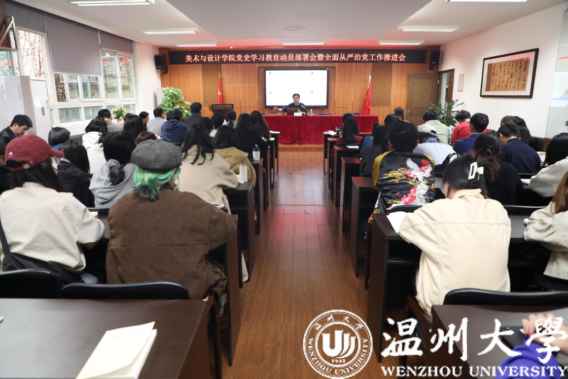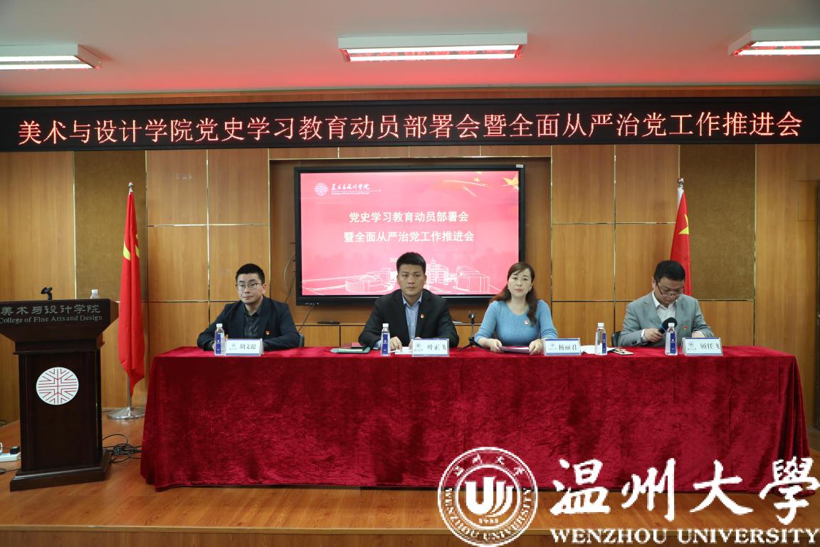 3月31日下午,日本色情片 美术与设计学院召开党史学习教育动员部署会暨全面从严治党工作推进会,贯彻落实学校党史学习教育动员大会工作部署,传达学校2021年全面从严治党暨“清廉温大”建设会会议精神。学院党委委员、纪委委员、全体党员师生参加会议,学院党委书记叶正飞作动员部署,党委副书记杨丽君主持会议。