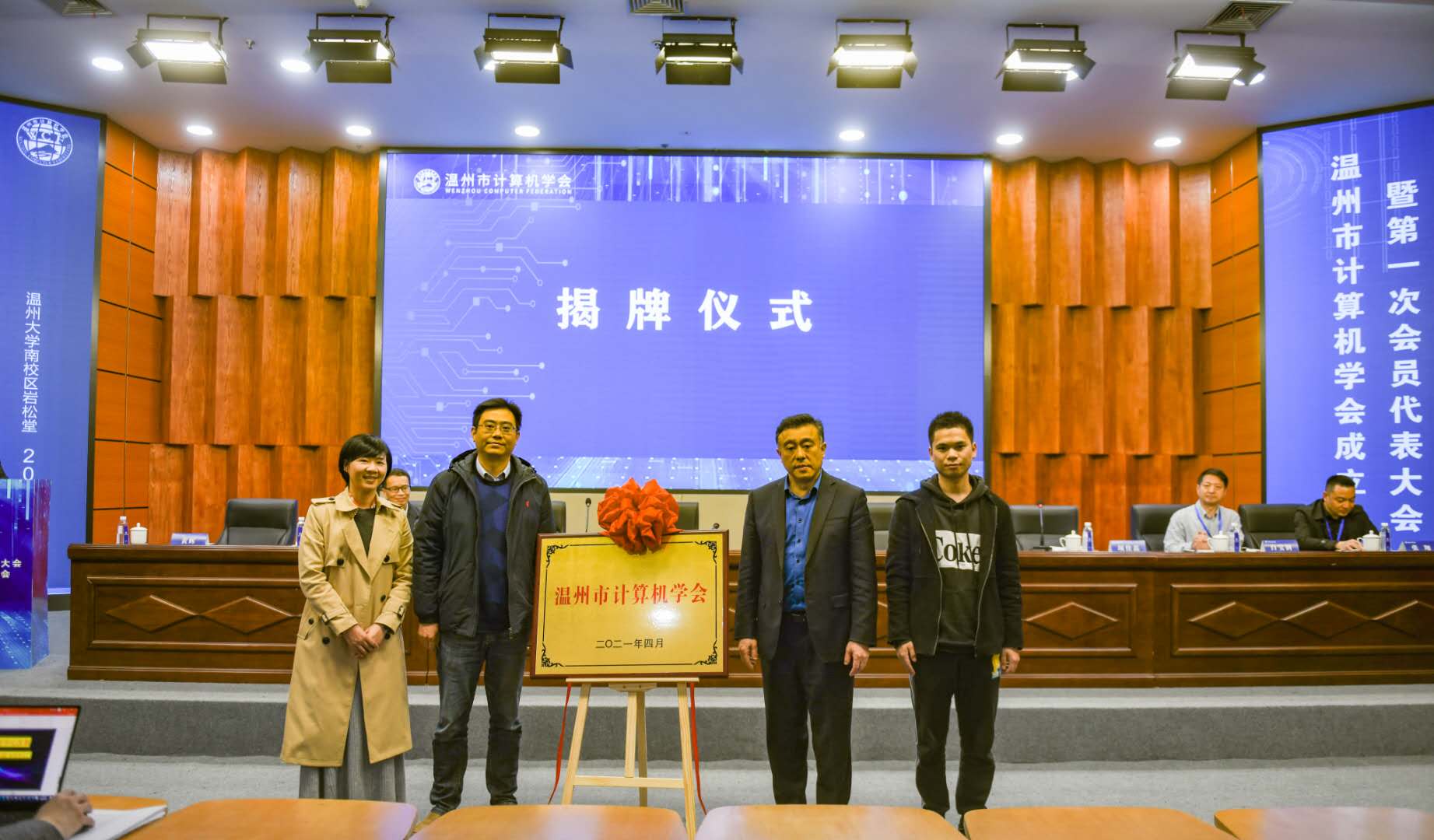 大会举行隆重的揭牌仪式,省计算机学会秘书长肖俊、市科协副主席章秀伟、日本色情片 副校长薛伟、市民政局项佳磊共同为温州市计算机学会揭牌。