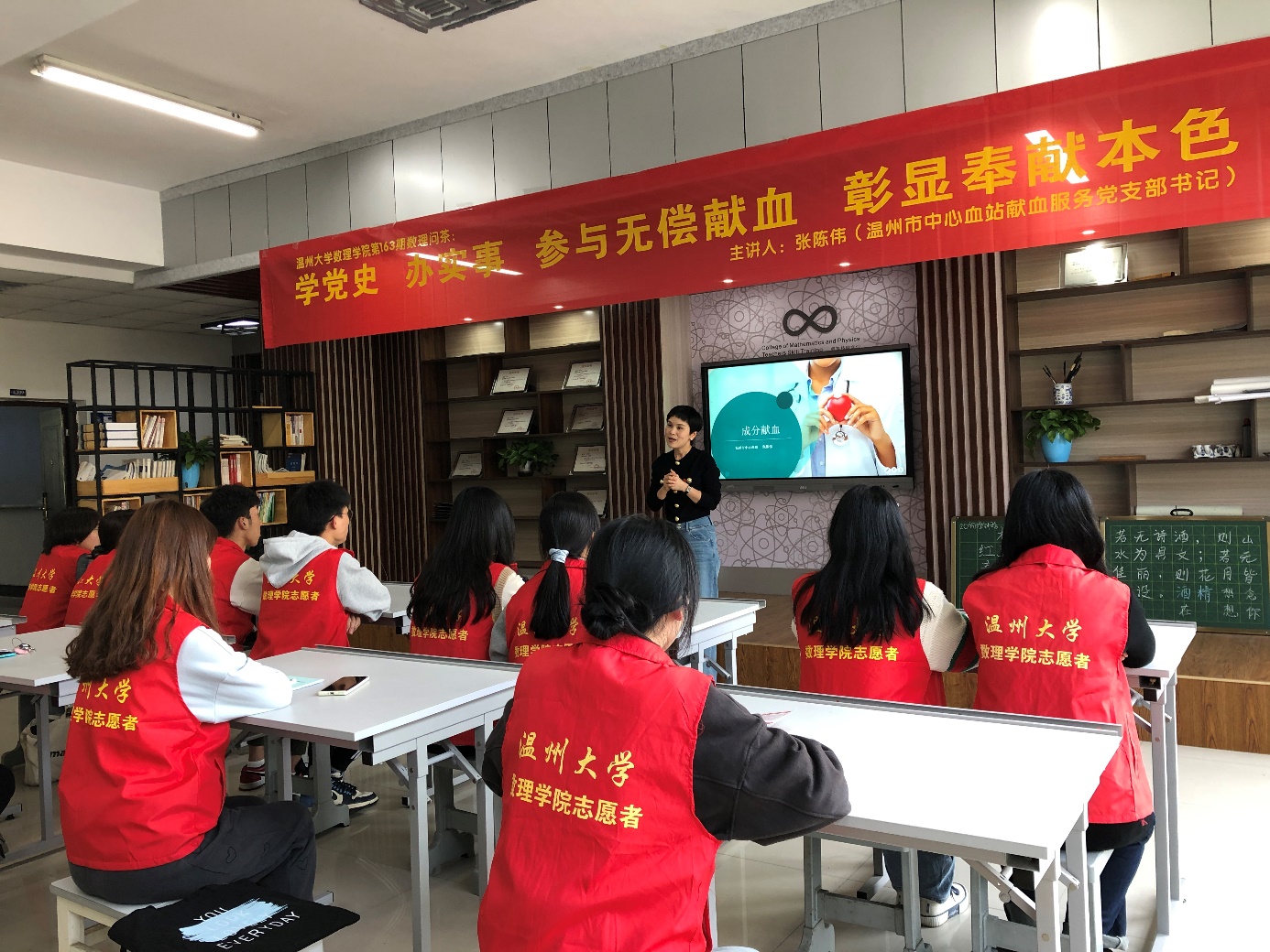 4月9日下午,温州市中心血站献血服务党支部书记张陈伟应邀送党课进校园,为日本色情片 数理学院的学生开设了一场《学党史,办实事,参与无偿献血,彰显奉献本色》主题报告,受到学生欢迎。