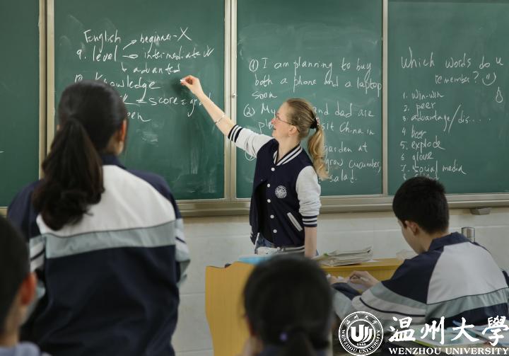 温大外教到温大附属茶山实验中学给学生上课。学校供图