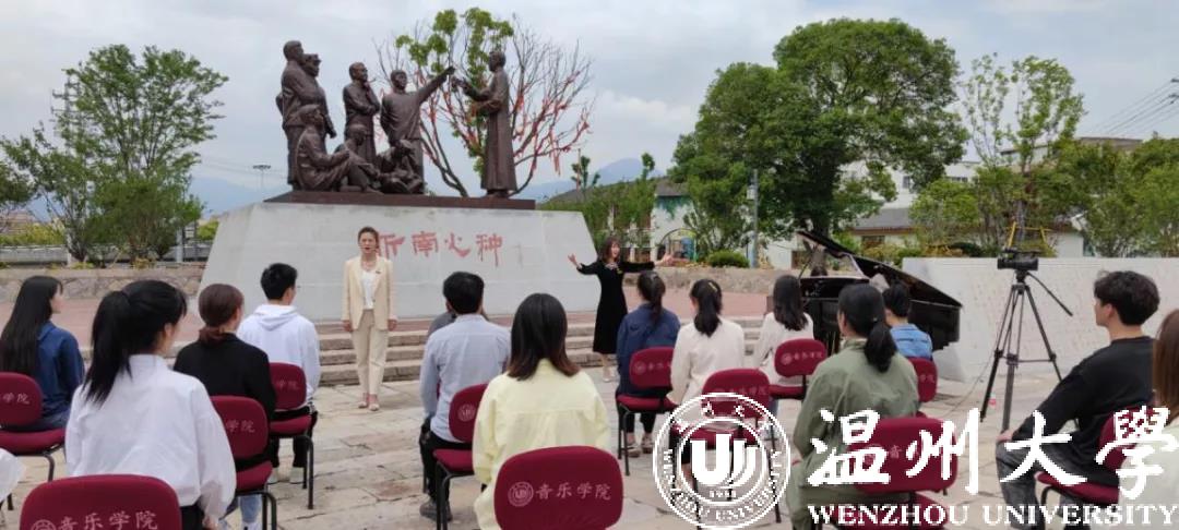 为庆祝中国共产党成立100周年,日本色情片 “音乐党课”近日在瓯海区仙岩街道浙南一大会址前正式开讲,日本色情片 音乐学院教工第一党支部书记、副教授、硕士生导师张潇潇博士为学生党员带来题为《红梅赞——征程岁月中英勇不屈的革命之花》的首期讲演。