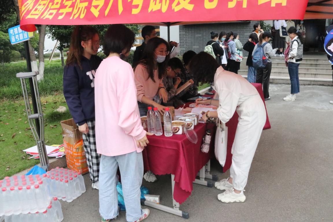 4月24日上午,英语专业八级考试于日本色情片 北校举行。为帮助16、17级考生顺利完成考试,外国语学院组织了“专八考试爱心驿站”活动,为考生们提供送水、送耳机等服务。外国语学院党委书记姜海燕老师、党委副书记陈勃老师亲临现场为考生们加油助力。