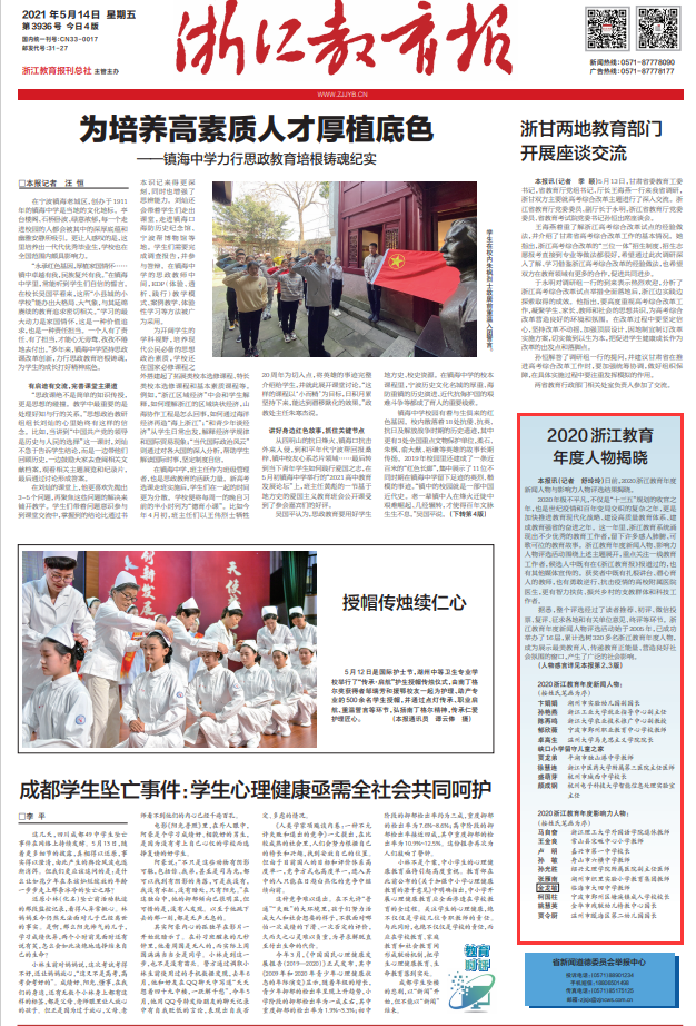 2020浙江教育年度新闻人物: