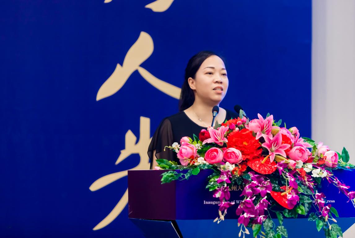 院党委书记姜海燕致辞。她代表学院对长期关心支持学院发展的校友表示感谢,向校友介绍了学院的发展现状和取得的成绩。在过去的岁月里,母院凝心聚力、众志成城,着力书写了学院发展的“奋进之笔”:英语专业获浙江省一流专业建设点,日语专业成功获批、第一届翻译专业学生顺利毕业……这些成就的取得是学院师生恪守初心的写照,也凝聚着广大校友的一份辛劳与热爱。