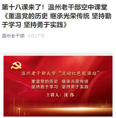 温州市老干部活动中心抓实党史学习教育,组织老同志学习党史入脑入心,宣传党史有声有色,推动党史学习教育热起来、活起来、实起来。