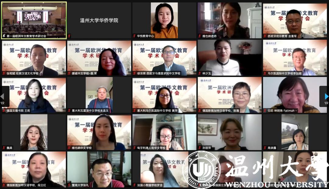 研讨会首先举办了侨心向党·喜迎建党100周年《温大华教二十年》办学成果展揭幕仪式,参会人员共同观看了办学成果展。本次展览分为四篇,分别为寻根之旅、教师培训、云端华教和学科发展,共设计了100块展板,为党的百年华诞献上特别的礼物。