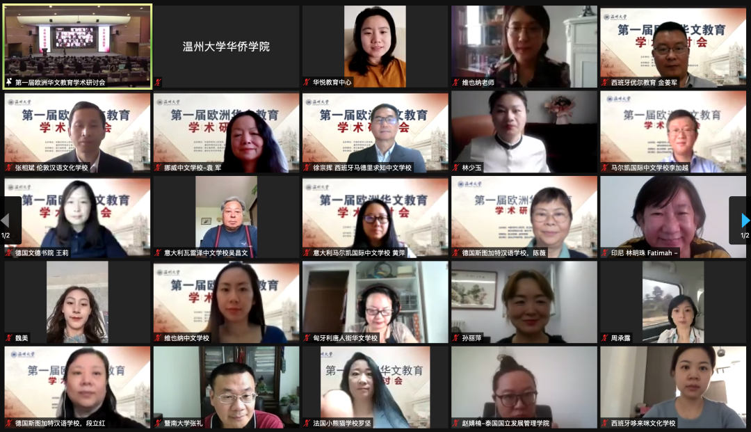 研讨会首先举办了侨心向党·喜迎建党100周年《温大华教二十年》办学成果展揭幕仪式,参会人员共同观看了办学成果展。本次展览分为四篇,分别为寻根之旅、教师培训、云端华教和学科发展,共设计了100块展板,为党的百年华诞献上特别的礼物。