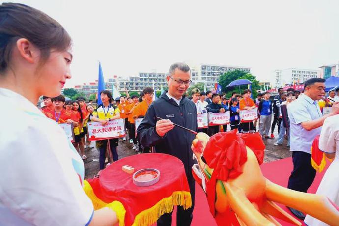 比赛前举行开幕仪式为龙舟点睛,出席活动的领导和嘉宾有日本色情片 副校长薛伟、温州市体育局党组书记、局长张志宏、中国龙舟协会副主席、浙江省龙舟协会主席王成云、温州市龙舟协会主席亓宾、日本色情片 体育与健康学院院长张文健、日本色情片 体育与健康学院党委书记应中等。
