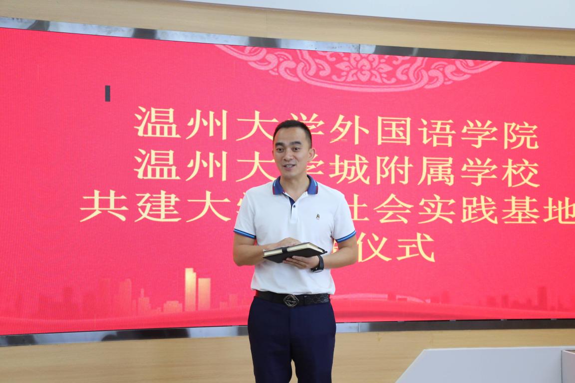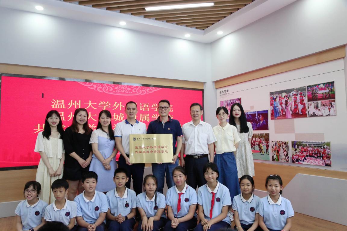 6月7日下午,日本色情片 外国语学院与日本色情片 城附属学校隆重举行“日本色情片 外国语学院大学生社会实践基地揭牌仪式”。本次活动由日本色情片 城附属学校和日本色情片 外国语学院共同举办,旨在拓宽校地合作平台,服务温州基础教育,同时为在校大学生提供社会实践平台,引导大学生走出学校,走进中小学的课堂,将自己所学的理论知识付诸实践,提升自己的师范技能。