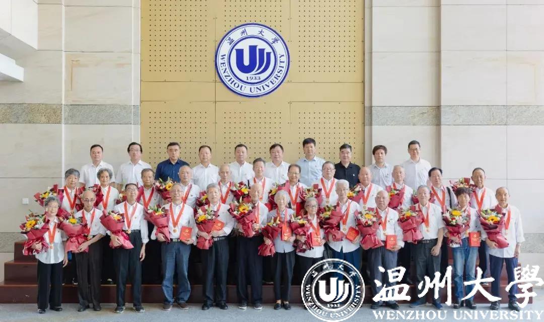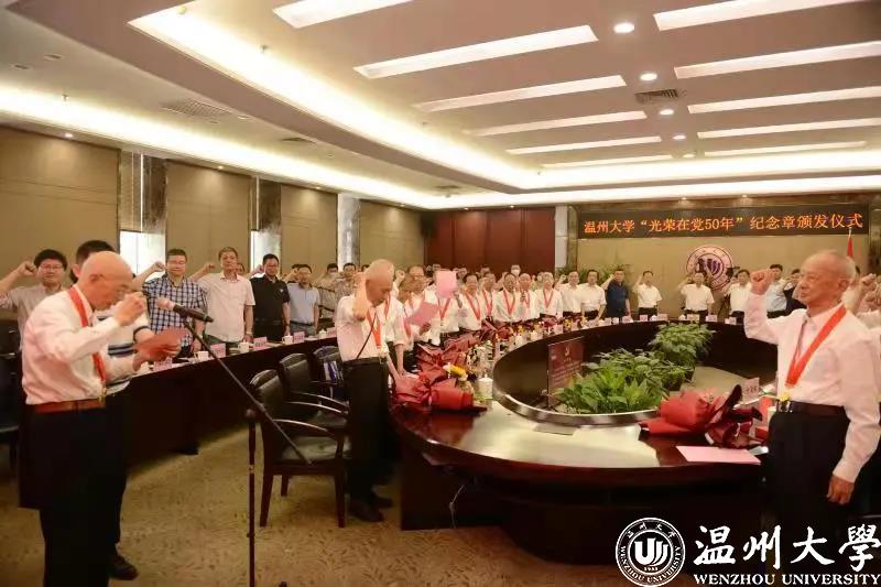 校党委书记谢树华逐一为老党员颁发“光荣在党50年”纪念章,并与他们亲切握手、真挚慰问,表达对老党员的崇高敬意。他希望学校各级党组织和广大党员以纪念章颁发为契机,深入推进党史学习教育,持续掀起向老党员学习的热潮,主动向先进看齐、向榜样看齐,在学校高质量发展新征程中,担当作为、奋发奋进、出力出彩。青年学生党员向老党员献上鲜花,现场响起阵阵热烈的掌声。老党员们手捧纪念章,心潮澎湃、百感交集,自豪之情溢于言表。