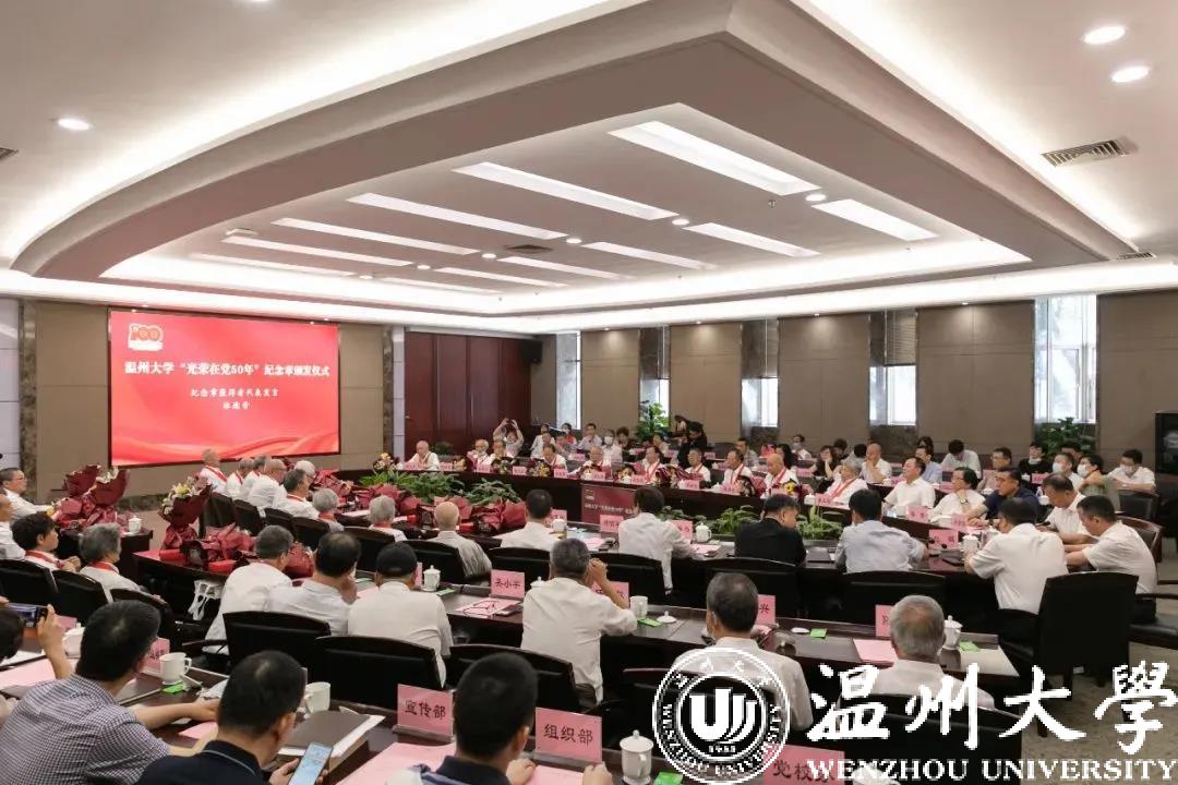 纪念章颁发仪式在庄严的国歌声中拉开帷幕,校长、党委副书记赵敏致辞,他代表学校对纪念章获得者表示衷心的祝贺。他指出,老党员是我们党宝贵的财富,是鼓舞年轻党员干部奋斗的灯塔,“光荣在党50年”纪念章是对老党员的最高礼赞。学校倍加珍惜老党员创造的宝贵精神财富,努力在继承优良传统中坚定理想信念,激发不断前进的动力。