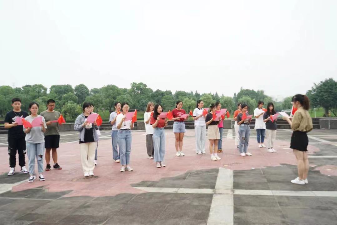 最后,陈梦雅同志带领着全体党员同志重温入党誓词。一声声庄严的宣誓在国旗广场上响起,仿佛又回到了当初入党宣誓时的那个场景。重温入党誓词,不忘入党初心,站在新征程的起点上,青年党员当担负时代使命,将铿锵有力的誓言和掷地有声的承诺化作实际行动,努力书写新的篇章!