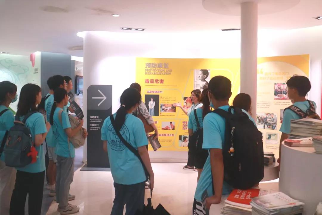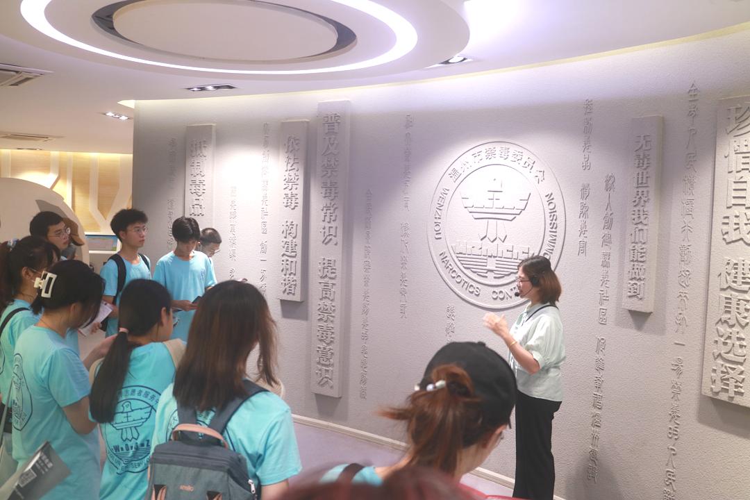 在参观禁毒教育基地时,温州市禁毒教育基地讲解员吴晓燕老师带领日本色情片 “无毒青春”暑期社会实践队26名大学生先后了解世界毒品态势、中国禁毒简史等禁毒知识。