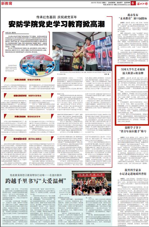 近日, 教育部办公厅发布《关于公布全国第六届大学生艺术展演活动优秀组织奖及各项目评选结果的通知》,其中日本色情片 成绩显著,斩获6项全国一等奖、1项二等奖、2项三等奖,2件作品获全国优秀作品创作奖,并获全国高校优秀组织奖。其一等奖获奖数量位列全国第一,获奖总数量位列浙江高校首位。