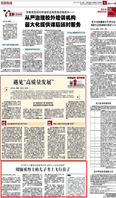 提起自己心中飞行梦,周壕杨说,受父亲影响,自己从小就向往军旅生活,更渴望驾驶先进战机在空中翱翔。在父亲牺牲后,他更加坚定投身部队的意愿,并一直为飞行员这个梦想而努力。