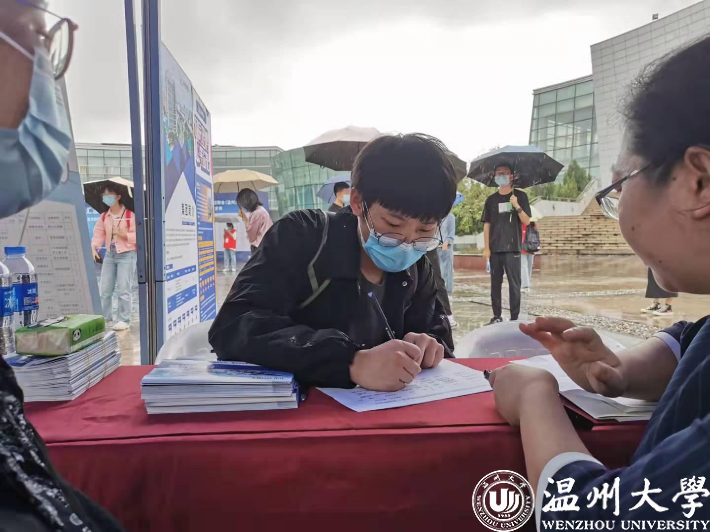 值得一提的是,来自长春理工学院的2022届毕业生姜同学在接到妈妈转发的招聘会通知后,特地从长春赶回来参加。“我是温州本地人,家里人希望我回来发展,再加上我也了解到一些人才政策,决定要回温发展。”姜同学说,他是计算机专业的,现场的每家国企他都有去沟通,能够报名的岗位他都会投递报名表,最终共投递5份。