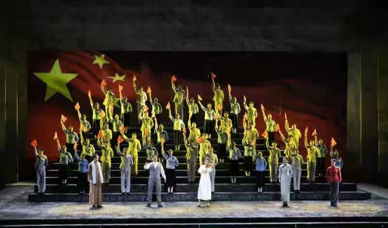 该剧融合了欧洲歌剧与中国民族歌剧的特点,以各种形式的重唱作为推动力,穿插运用宣叙调、合唱、器乐等艺术形式进行有机连接,逐渐将音乐与剧情推向高潮,最后以大合唱《国旗颂》收尾。