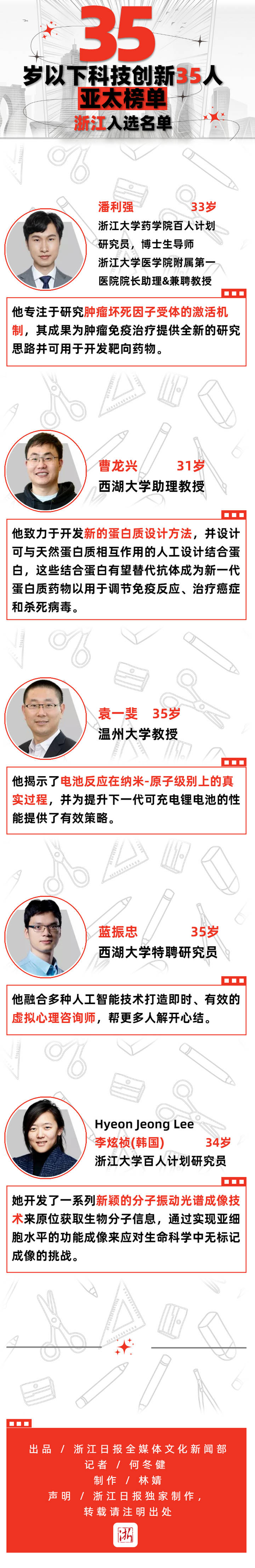 10月28日,在国际知名期刊《麻省理工科技评论》与杭州未来科技城共同举办的世界科技青年论坛上,新一届亚太区“35岁以下科技创新35人”揭晓,共有5名来自浙江高校和科研机构的青年科学家入选。