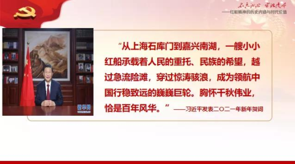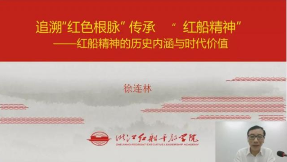 徐连林以习近平总书记在2021年元旦献词中:“2021年是中国共产党百年华诞。百年征程波澜壮阔,百年初心历久弥坚。从上海石库门到嘉兴南湖,一艘小小红船承载着人民的重托、民族的希望,越过急流险滩,穿过惊涛骇浪,成为领航中国行稳致远的巍巍巨轮。胸怀千秋伟业,恰是百年风华。”为开篇,从“红船精神的认识、红船精神的内涵、红船精神的价值”三个方面,深入浅出阐述“红船精神”的概念并系统阐释了“红船精神”的深刻内涵和时代价值,再现了波澜壮阔的百年中共党史中开天辟地、敢为人先的首创精神,坚定理想、百折不挠的奋斗精神,立党为公、忠诚为民的奉献精神。