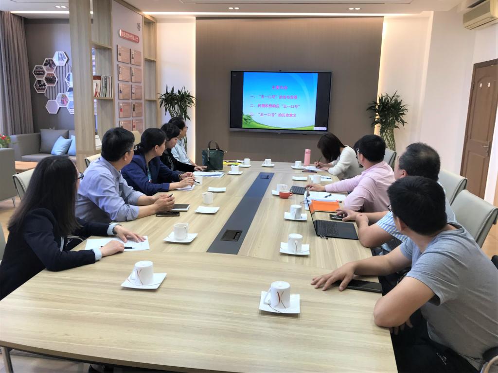 纪念活动伊始,安荣副主委通过PPT的演示,从“五一口号”发布的历史背景,民盟先贤如何积极响应“五一口号”以及“五一口号”重要的历史意义三个方面进行介绍。随后,与会人员集体观看纪录片《西柏坡来电》第32集“五一口号,登高一呼齐响应”,更加详细地了解了中共中央“五一口号”发布的历史背景和重大意义,对我国多党合作和政治协商的形成过程有了更为深刻的认识。