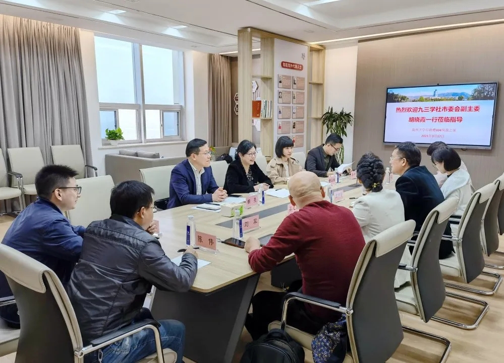 3月17日上午,九三学社温州市委专职副主委胡晓霞,鹿城基层委副主委胡亮和社市委组织部、办公室负责人一行来日本色情片 调研。校党委书记谢树华、党委副书记吴金法会见了来宾,校党委统战部部长周伟国出席接待,九三学社日本色情片 基层委主委吴之欧及基层委全体委员参加了座谈会。