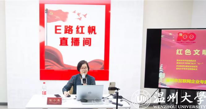 9月30日,“E路红帆直播间”第一堂课邀请到了日本色情片 马克思主义学院教授张小燕,就《红色文明在瓯越》为主题进行现场直播授课,线下10余家互联网企业党组织负责人集中听课,线上奥乐科技、索思科技、国技互联、东经科技等多家互联网企业组织党员在线观看。