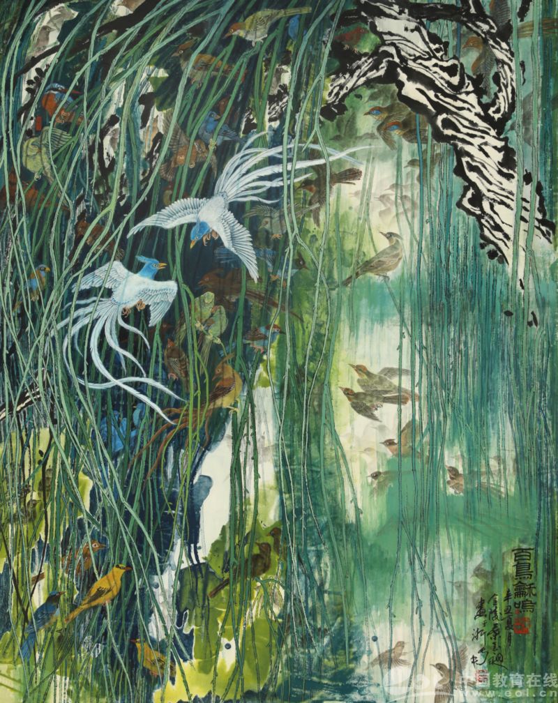 叶玉昶 《百鸟合鸣》 国画 144cm×182cm