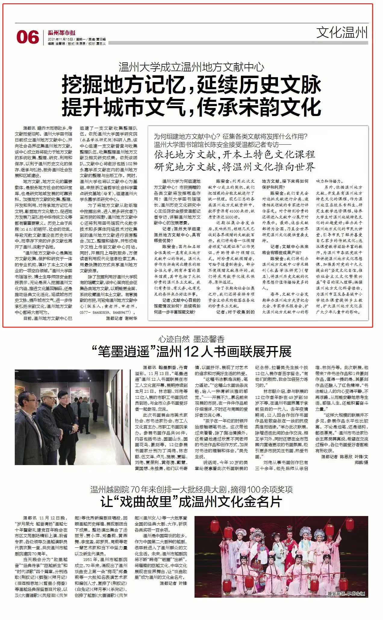 陈安金:我们将创办温州地方文献中心学术辑刊《永嘉学派研究》(暂名),将温州历史文献的优秀思想价值传播给更多的人。