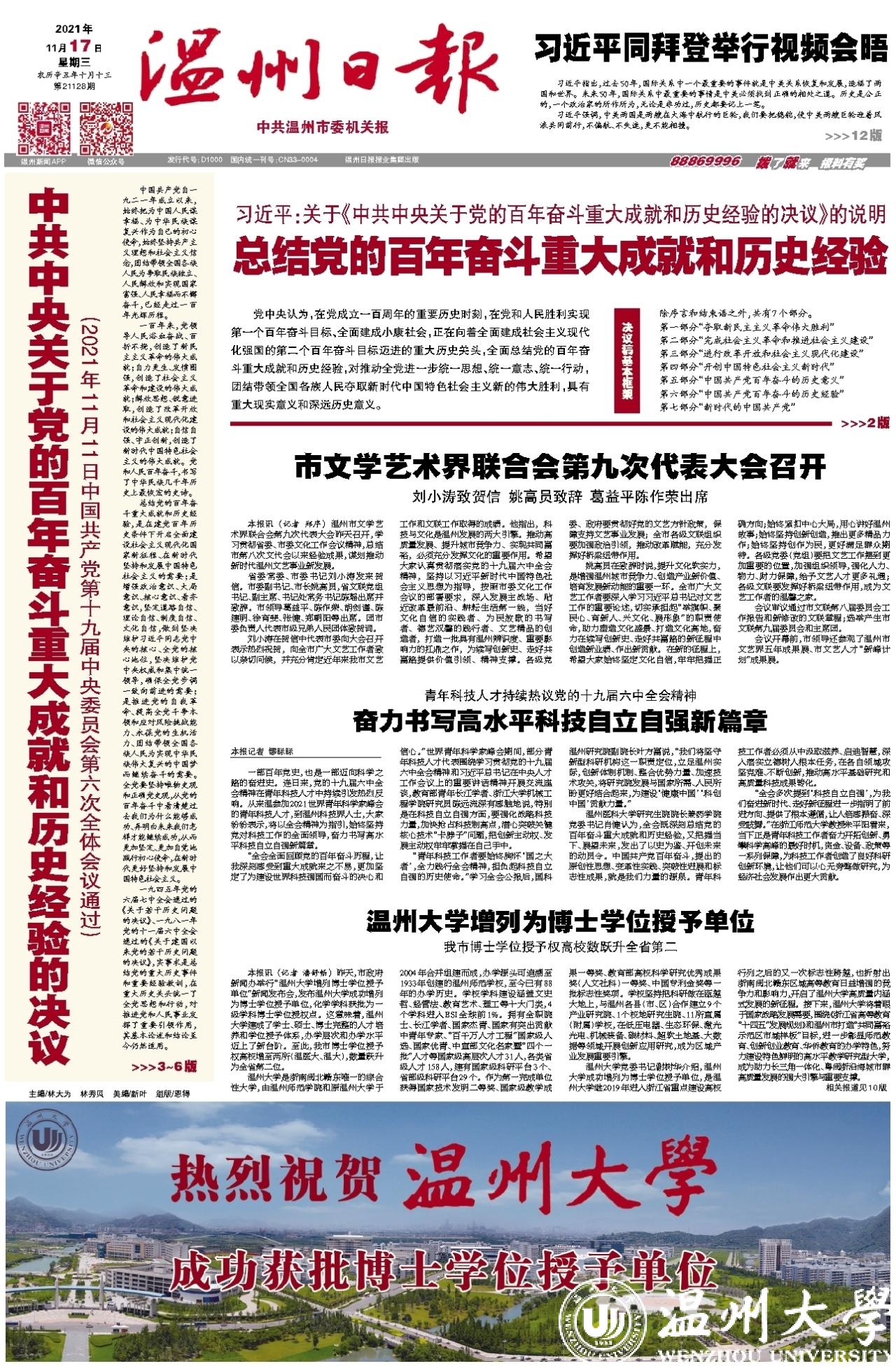 相关链接://trsapi.wzrb.com.cn/wenzhouH5/commonDetail.html?tenantId=T_GOV&siteId=S_WZ&source=https%3A%2F%2Ftrsapi.wzrb.com.cn%2Fapp_pub%2Fxinwen%2F1600568405293%2F202111%2Ft20211117_206505.html