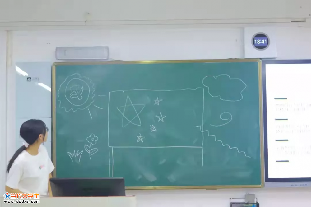 19小教1班开展以“颂咏祖国华诞,心寄盛世长青”为主题的活动,意在通过红色精神的感召,调动同学们的爱国热情。在团支书的主持下,同学们在“硕果激热血”环节,通过观看一个个视频,学习了新中国以来祖国强大的变化与辉煌的成就。在接下来的“红歌悟情怀”环节中,团支书准备了五首红色经典歌曲,同学们认真倾听、细细分辨。一串串旋律在教室里回荡,一双双小手被坚定举起,一时之间,这些脍炙人口的歌曲引得班级同学不约而同地唱了起来。花图寄志向,丹心送祝福。本次活动,不仅弘扬了红色精神,也引导了同学们树立远大的青年志向以回报祖国,共同创造祖国盛世。