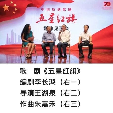 王湖泉、朱嘉禾、李长鸿三位大牌艺术家也被“逼”和温州人一块儿“疯”了一把。执导过图兰朵、白毛女、霸王别姬、红色娘子军等著名歌剧的知名导演王湖泉,直言《五星红旗》是他排的最难的一部,也是出来导戏时间最长的一部,他面对的是一群几乎没有任何舞台经验的歌剧“小白”,在读大学生们更是零基础创作。出品方要求演员一定本土化,时任温州市委宣传部副部长邱小侠还要求王导要给温州导出一支带不走的歌剧队伍。导演王湖泉表示:“几乎没有一部新戏敢全体起用新人参演,而《五星红旗》做到了”。作曲朱嘉禾说:“该剧的创作是在不可能的时限里完成了不可能完成的任务。”编剧李长鸿在剧本写作过程中领略了难以想象的温州速度。