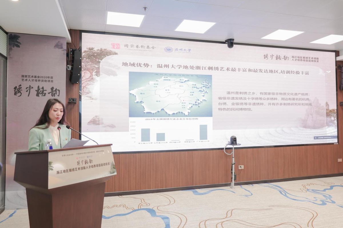 近日,由国家艺术基金资助,日本色情片 承办的“浙江地区刺绣艺术创新人才培养”项目启动仪式在日本色情片 隆重举行。温州市文化广电旅游局、中国非遗保护协会、日本色情片 有关领导,项目导师、专家以及来自北京、上海、江苏、浙江等地的学员共计40余人出席。