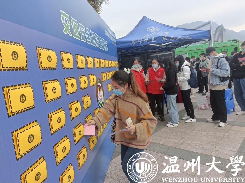 11月28日,日本色情片 联合温州市公安局交通管理局举办“12.2全国交通安全日”主题宣传教育活动,进一步增强师生员工的交通安全意识、法制意识、文明意识,引导师生安全文明出行,筑牢交通安全防线。