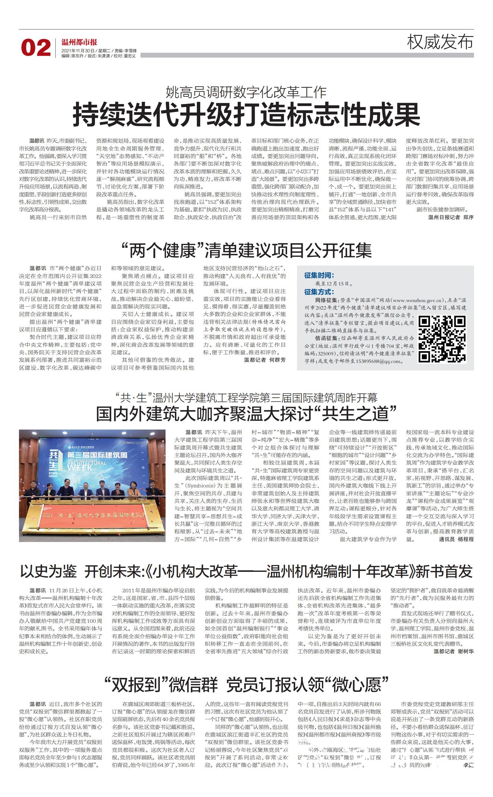 温大建筑学专业作为学校国家级一流本科专业建设点推荐专业,以教学结合实践、传承地域文化、推动国际化交流为办学特色。“国际建筑周”作为建筑学专业教学改革项目,秉承“搭平台、汇名家、拓视野、开思路、谋发展、筑新工”的宗旨,通过举办“专家讲座”“主题论坛”“专业沙龙”“课程作业成果展览”“观摩课”等活动,为广大师生搭建一个交互交流与深入学习的平台,促进人才培养模式改革与创新,提高教育教学质量。通讯员 杨程程