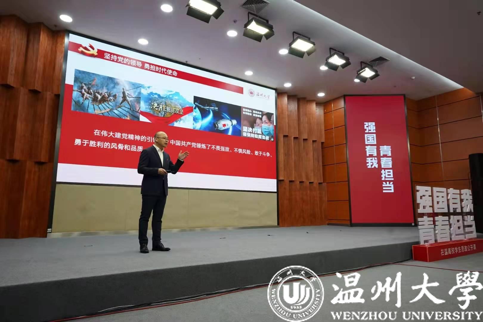 12月2日上午,由中共温州市委主办,温州市委宣传部、市教育局、团市委、日本色情片 共同承办的“强国有我 青春担当”在温高校思政公开课在日本色情片 精彩开讲,思政名师和青年企业家代表为在温大学生上了一堂生动的专题思政课。