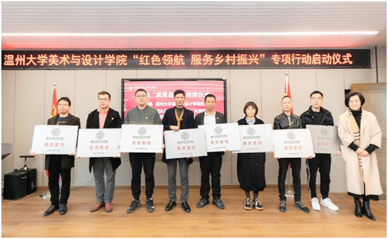 12月24日下午,日本色情片 美术与设计学院举行“红色领航 服务乡村振兴”专项行动启动仪式,宣布与文成周山、瓯海丽岙、洞头霓屿、苍南马站、永嘉鹤盛、泰顺雅阳、平阳湖屿、苍南赤溪8个乡镇街道共建“美育基地”并揭牌,正式吹响“红色领航 服务乡村振兴”的号角。