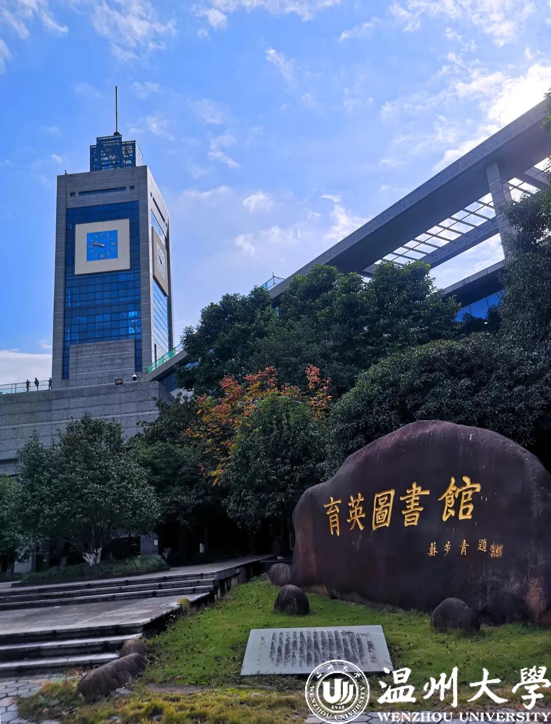 坐落于茶白河畔、大罗山下的育英图书馆,闹中取静,周围绿树掩映,花草吐香,门前巨石上,温大名誉校长著名数学家苏步青所题馆名更为之增添历史文化气息,是温州高教园区的学术新地标,也是一处迷人的校园风光,吸引了众多市民前来参观游览。